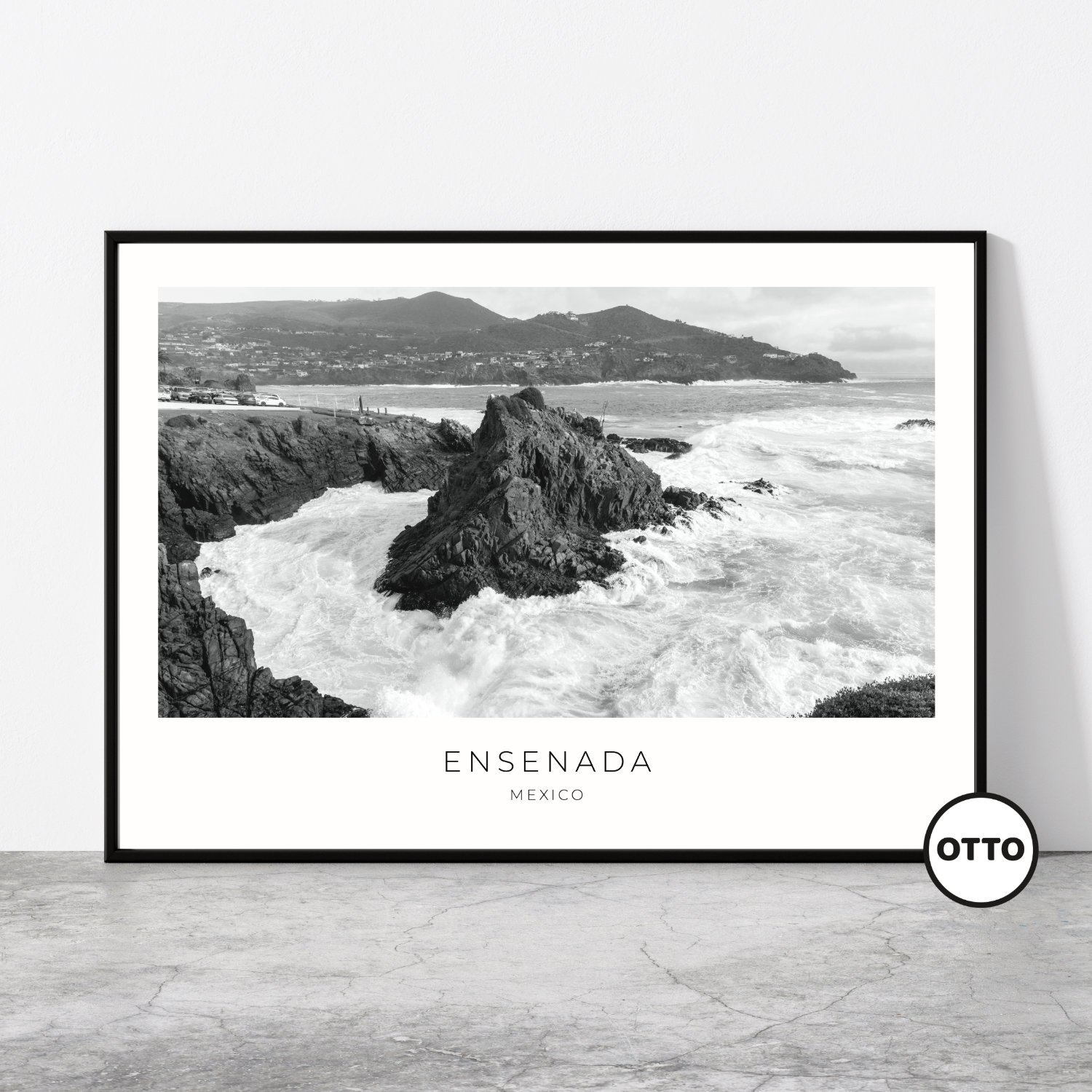 Home Travel Prints Black & White North America Ensenada, Mexico Travel Poster