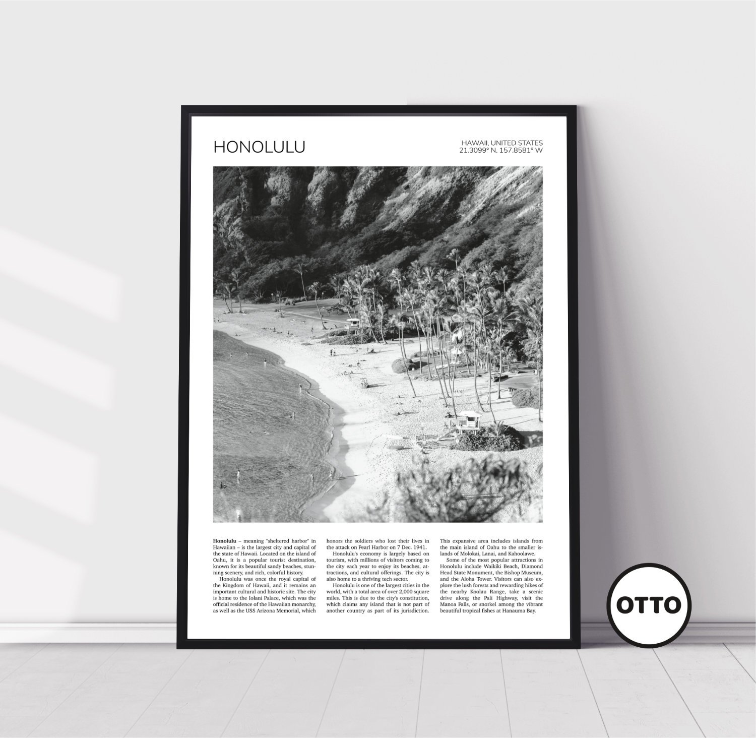 Home Travel Prints Black & White North America Honolulu, Hawaii, USA Travel Poster