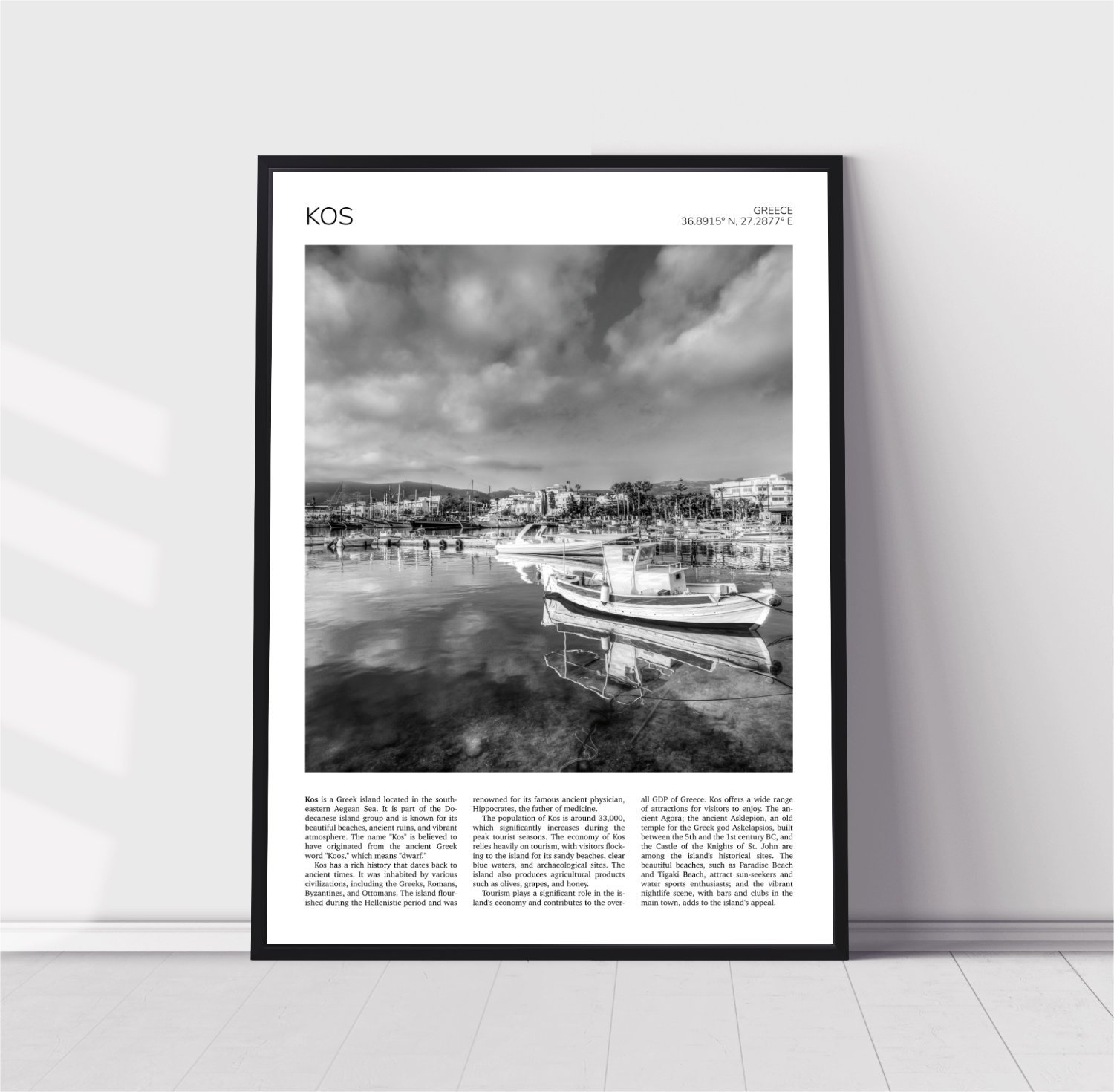 Home Travel Prints Black & White Europe Kos, Greece Travel Poster