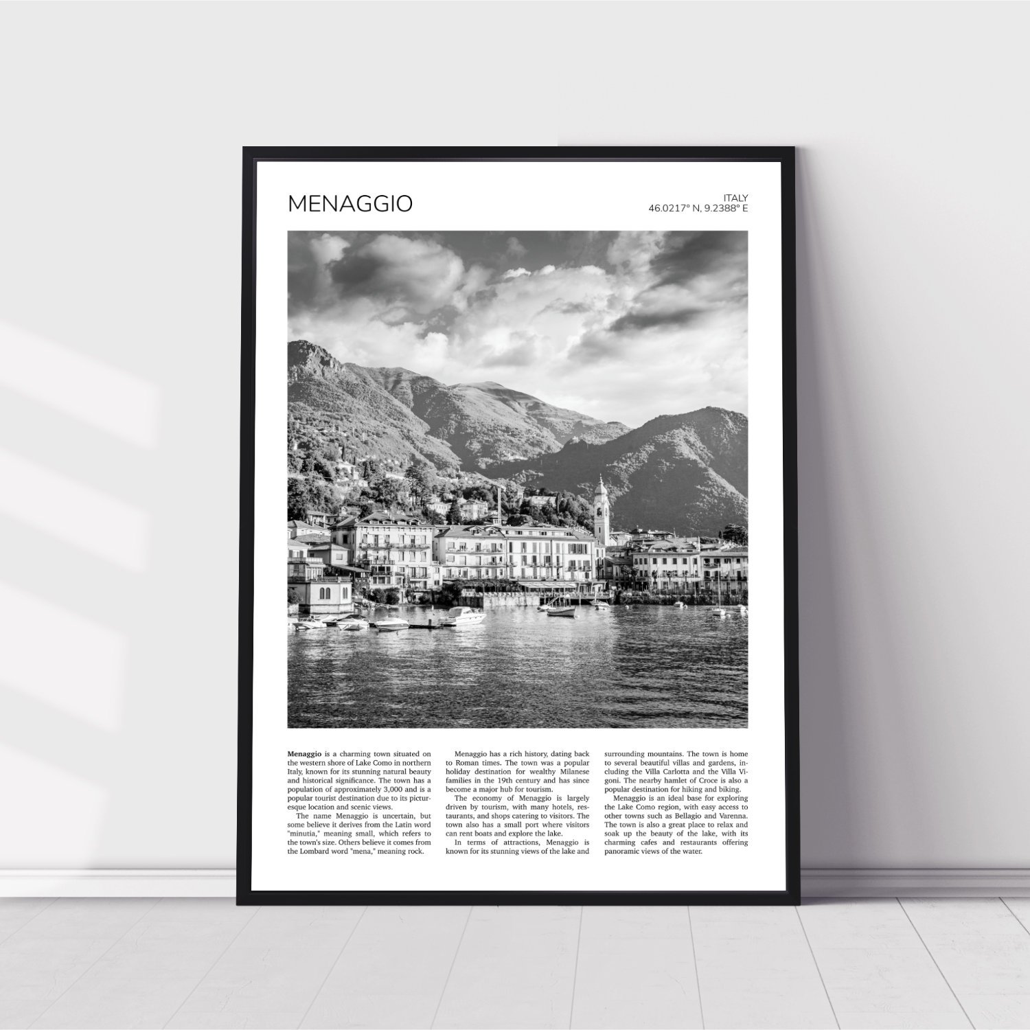 Home Travel Prints Black & White Europe Menaggio, Italy Travel Poster