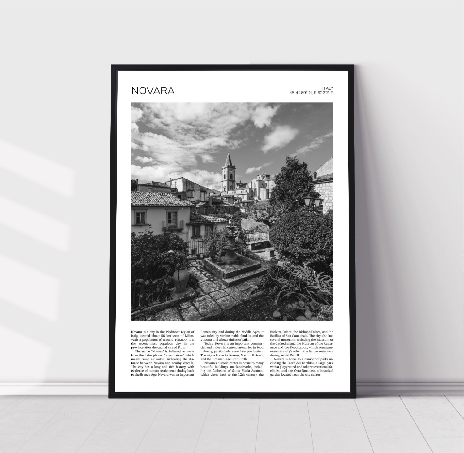 Home Travel Prints Black & White Europe Novara, Italy Travel Poster