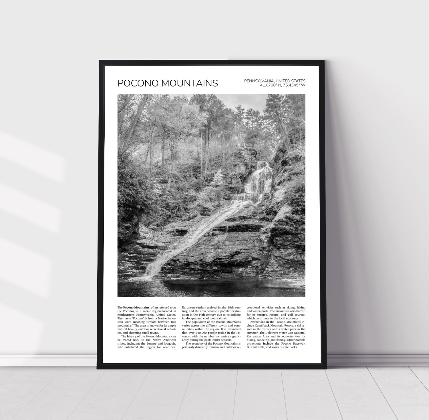 Home Travel Prints Black & White North America Pocono Mountains, Pennsylvania, USA Travel Poster